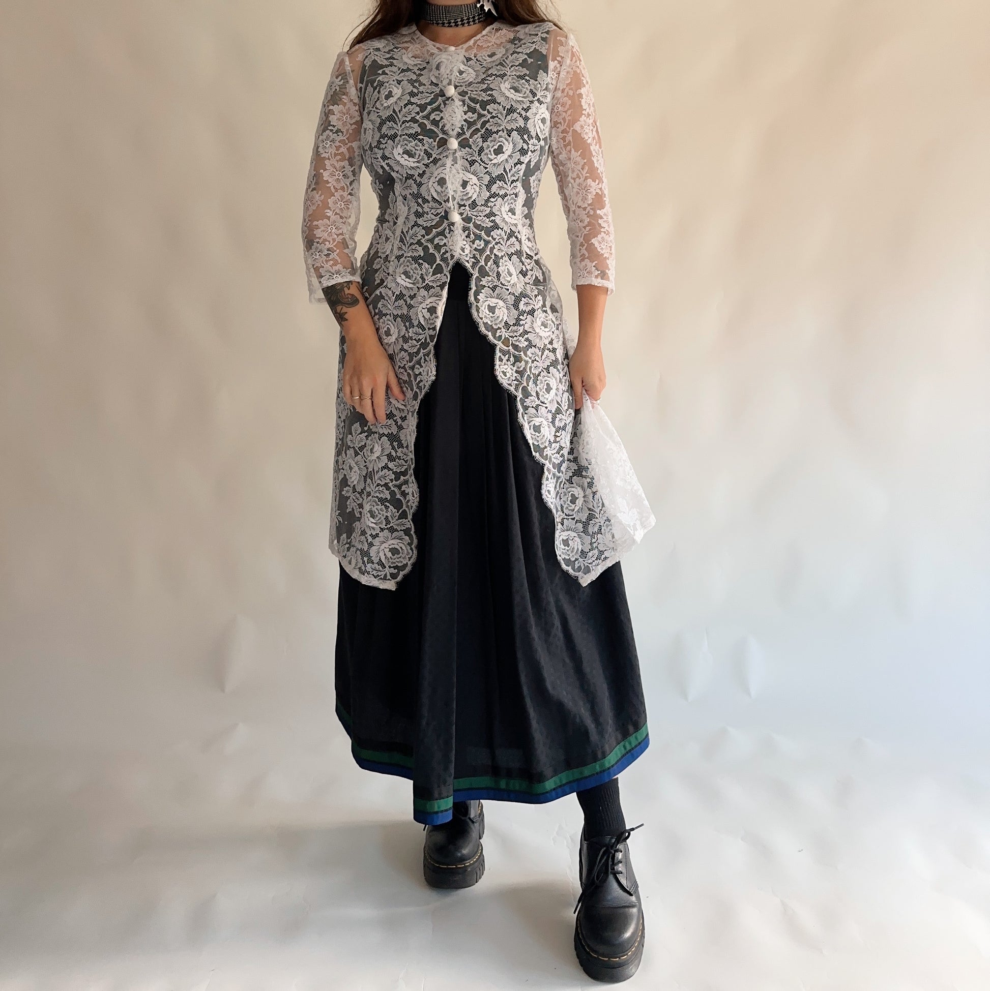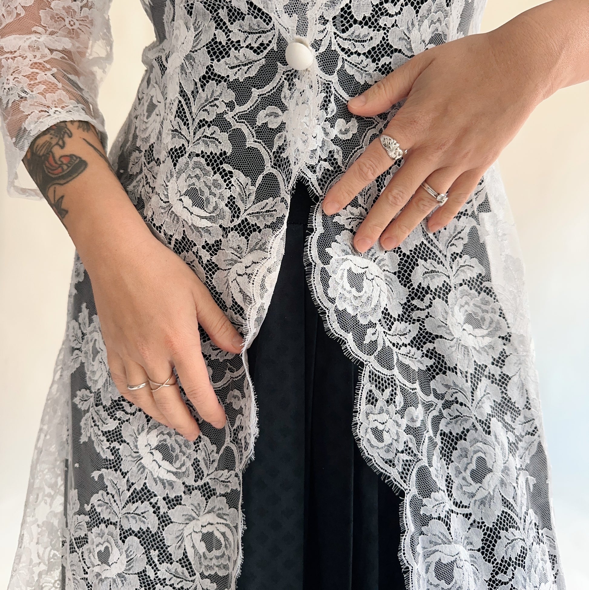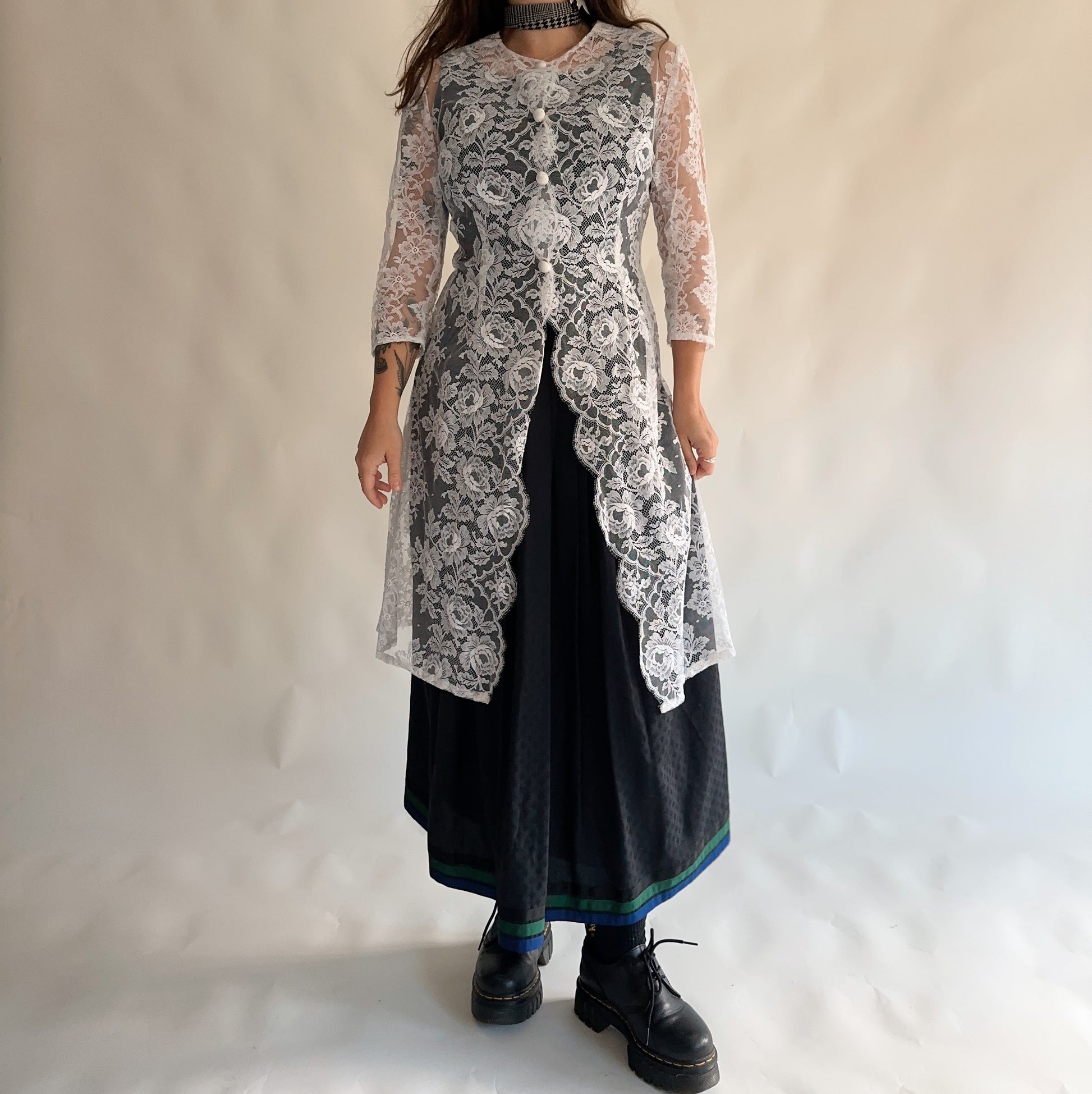 vestido/sobreposição vintage rendada branca