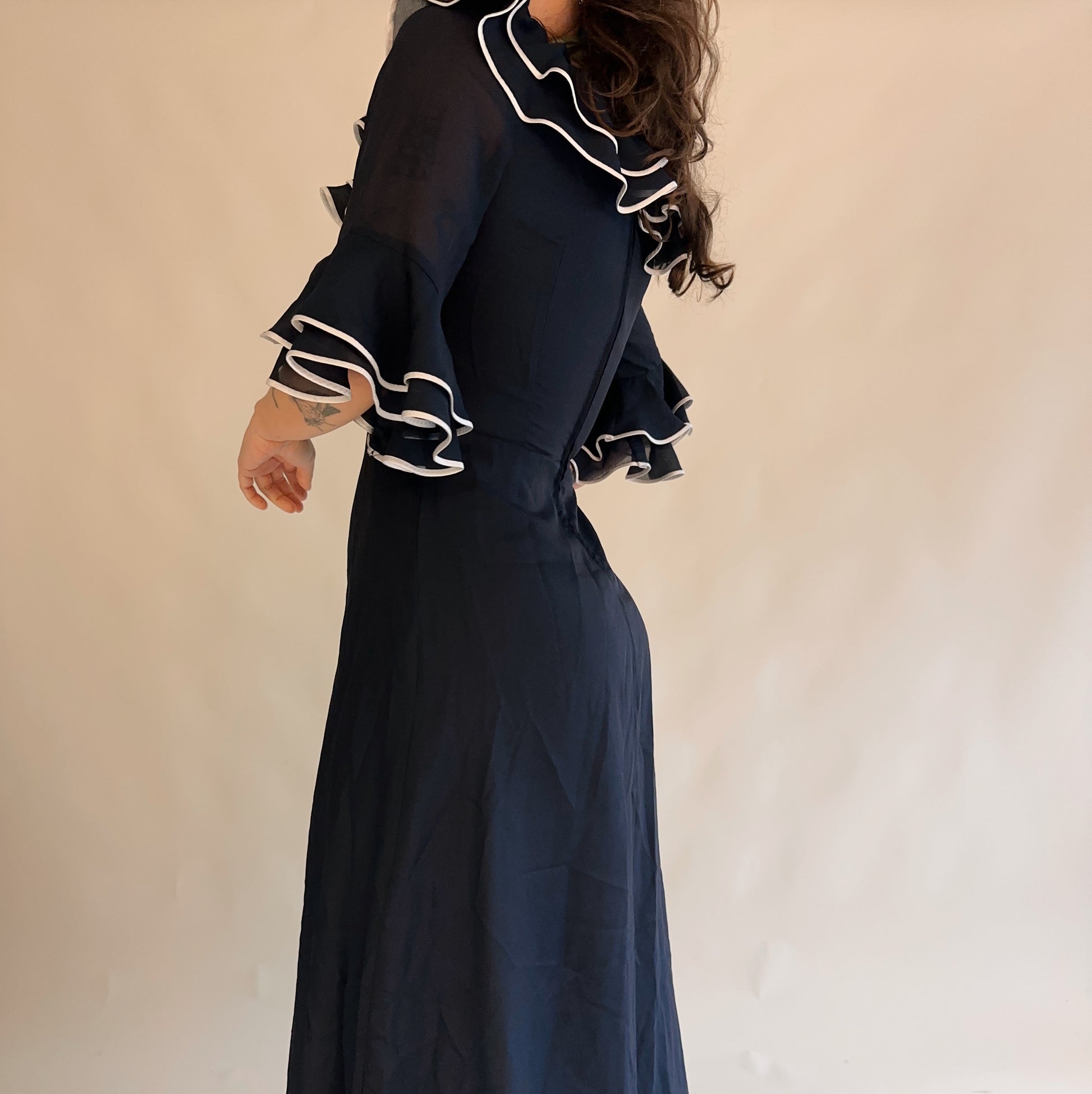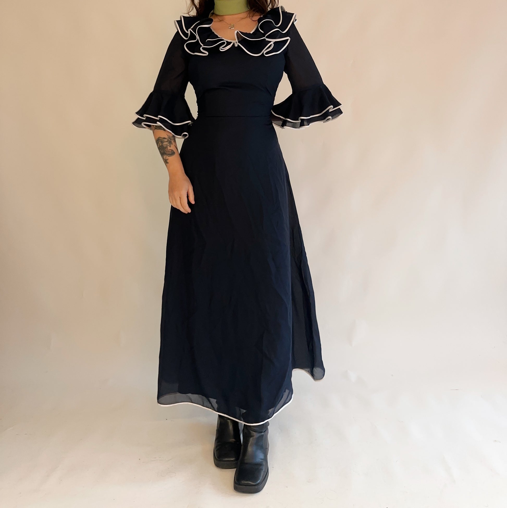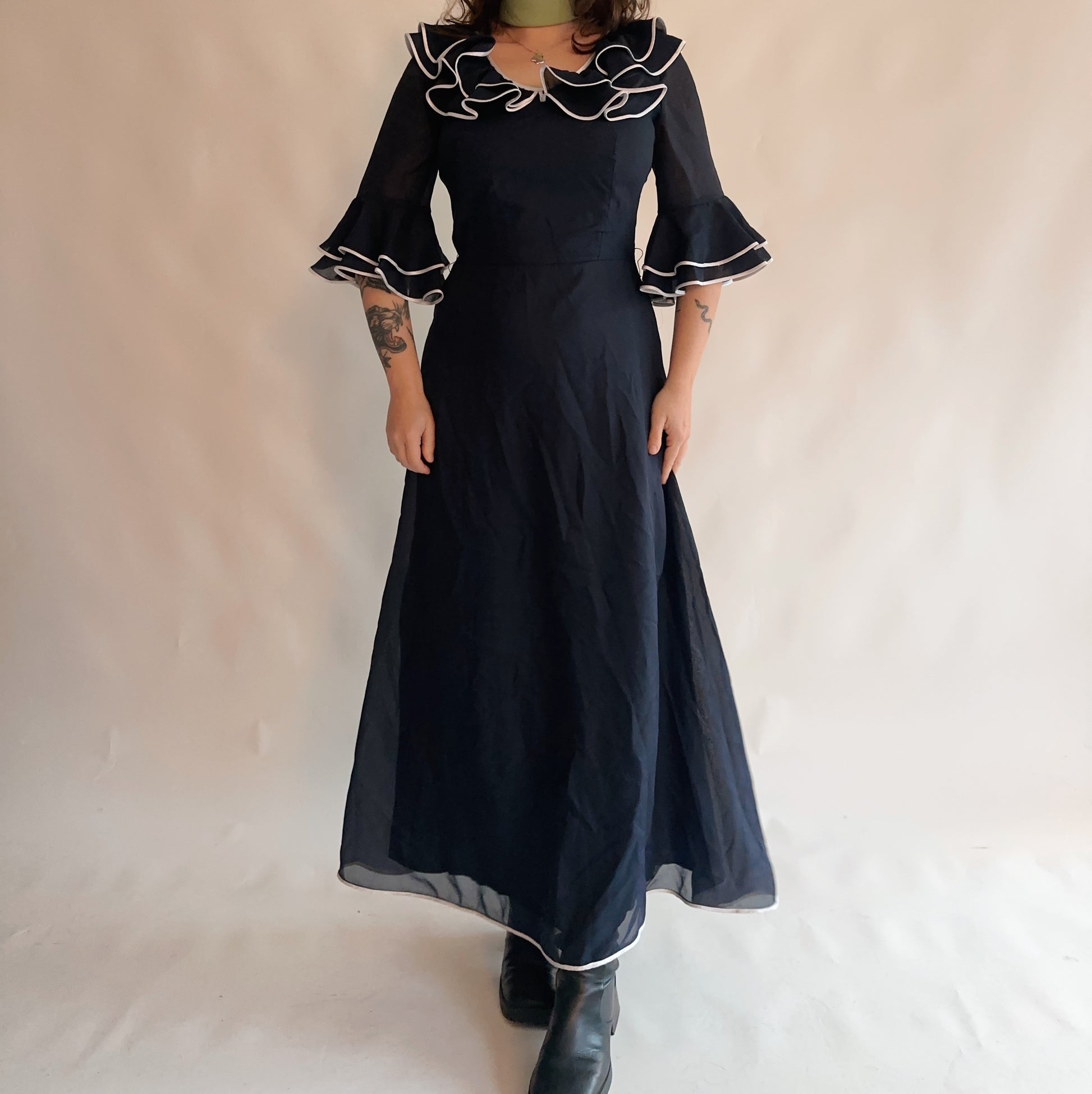 vestido vintage maxi dos anos 70s