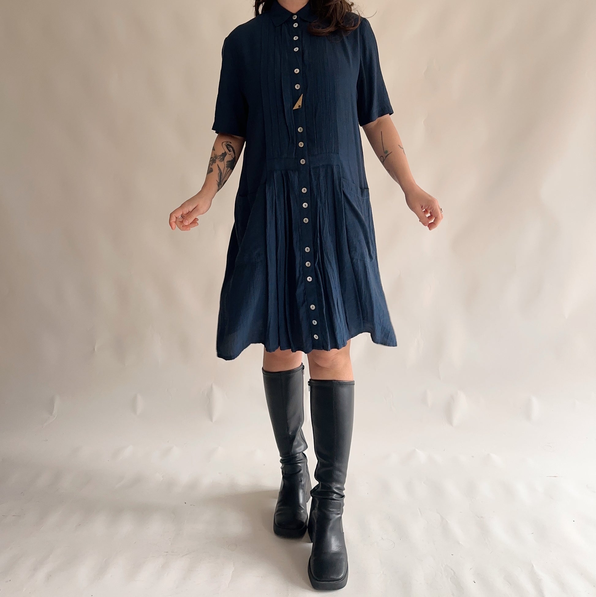 vestido vintage azul fluido